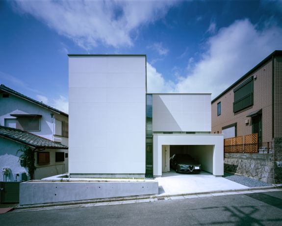 敷地は高槻市の丘陵部の閑静な住宅街にあり、造成地特有の前面道路の勾配や高さ制限といった制約条件がある土地でした。
