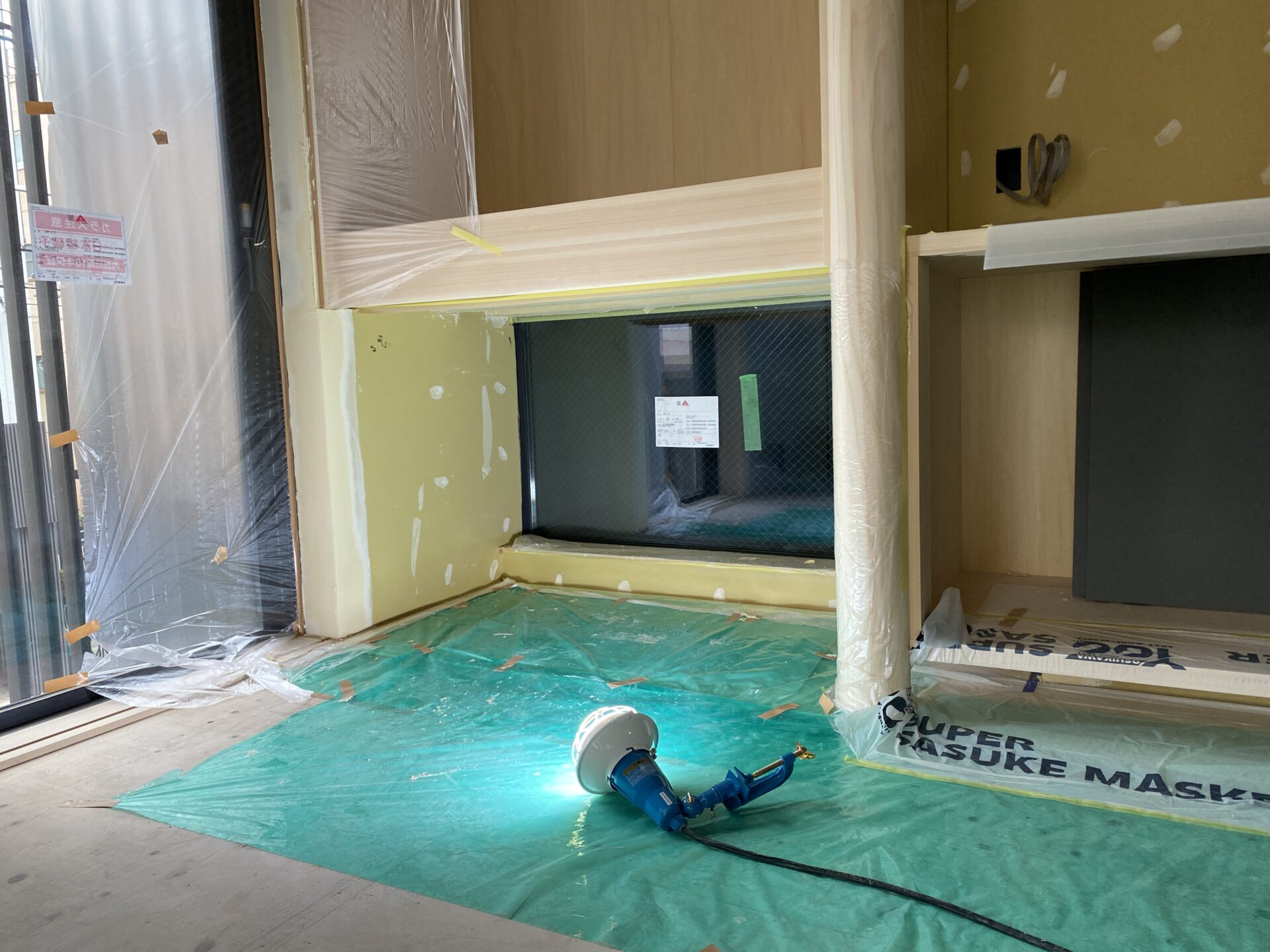 その斜めの壁を照明でどうみせていくのか、検討中です。