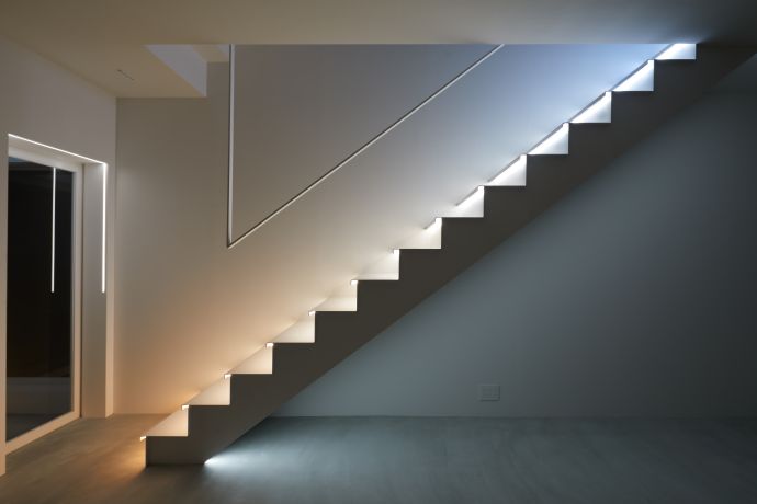 ガラスで囲まれた吹き抜けのサンルームにより、家の中のいろいろな場所から時間の移り変わりによって変化する光の表情が眺められます。また、ガラスの透過や反射により各部屋同士にちょうど良い気配感が作られたのではと思います。