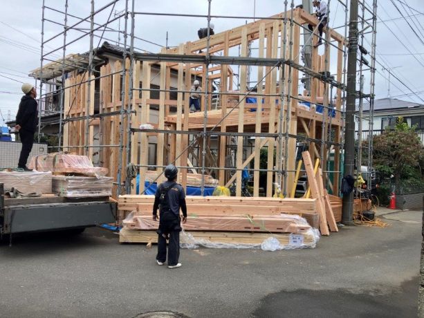 埼玉:所沢の家 20251130 埼玉:所沢の家 建て方 埼玉:所沢の家 建て方を行いました 職人さんが軽々と骨組みを組み立てていく姿は 毎回のようにすごいなと感じます。 想像していた見え方となり一安心です。 住宅 住宅設計 埼玉 大阪 建築 建築家 所沢 藤原・室 建築設計事務所 設計事務所