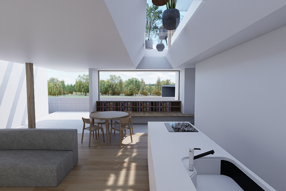 緑を通じて家族の気配を感じられる空間を提案しました。
