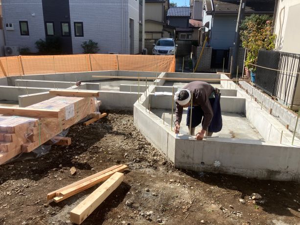 敷地に対して配置が正しいか、配筋が正しく行われているかを確認していきます。