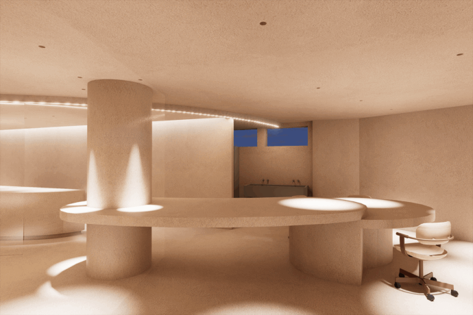 阿倍野の事務所本社ビルの家具のデザインを検討しています。