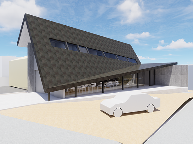 折れた大屋根を被せた案です。