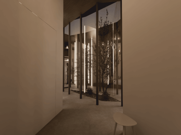 その斜めの壁を照明でどうみせていくのか、検討中です。