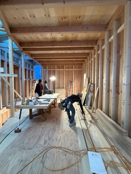 リノベーションなので、まずは既存のカーペットをめくったり、エアコンを移設したりしています。