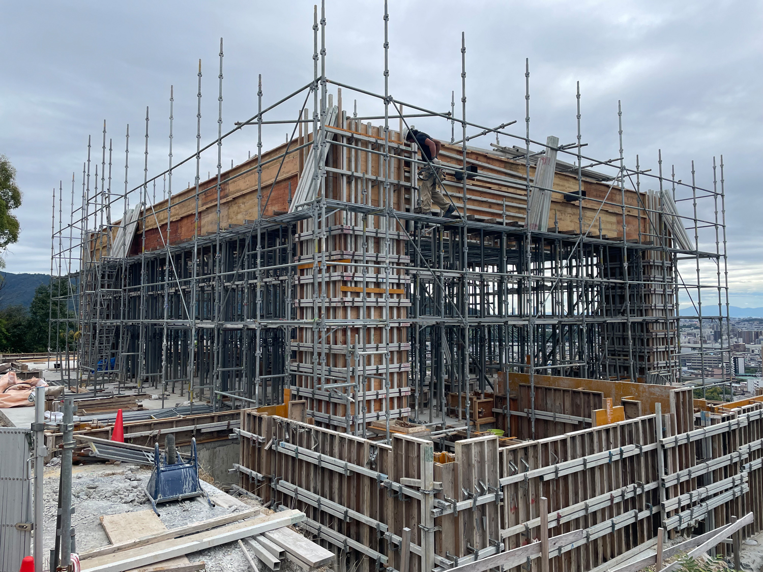 柱のサイズもかなり大きいので、型枠大工さんが小さく見えます。