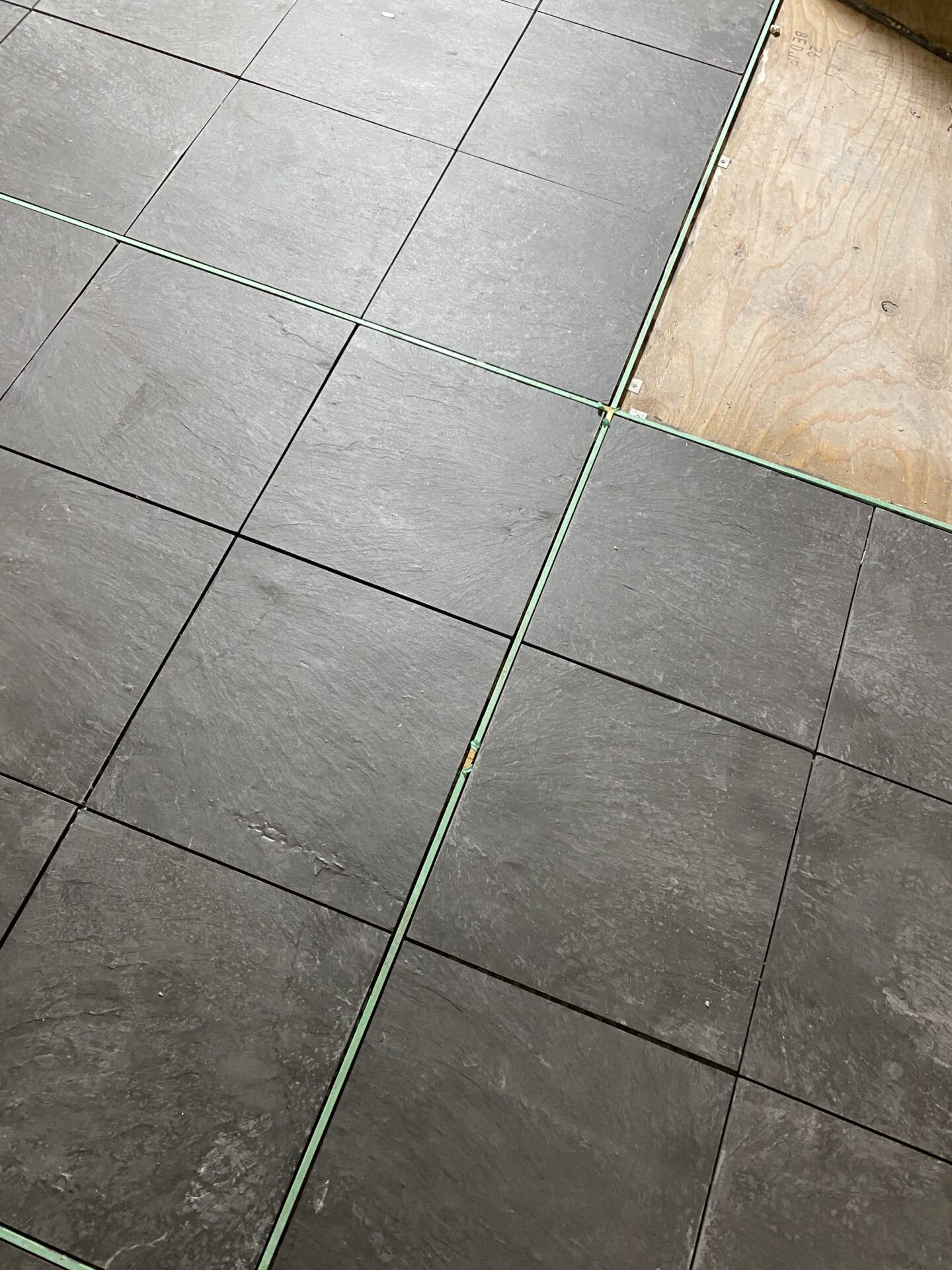 真鍮目地と黒い石がうまく調和した空間になるといいなと思います。