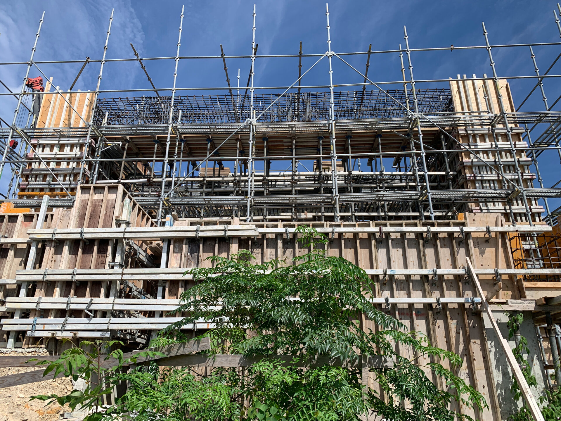 柱の配筋が終わり、型枠工事が進んでいます。
