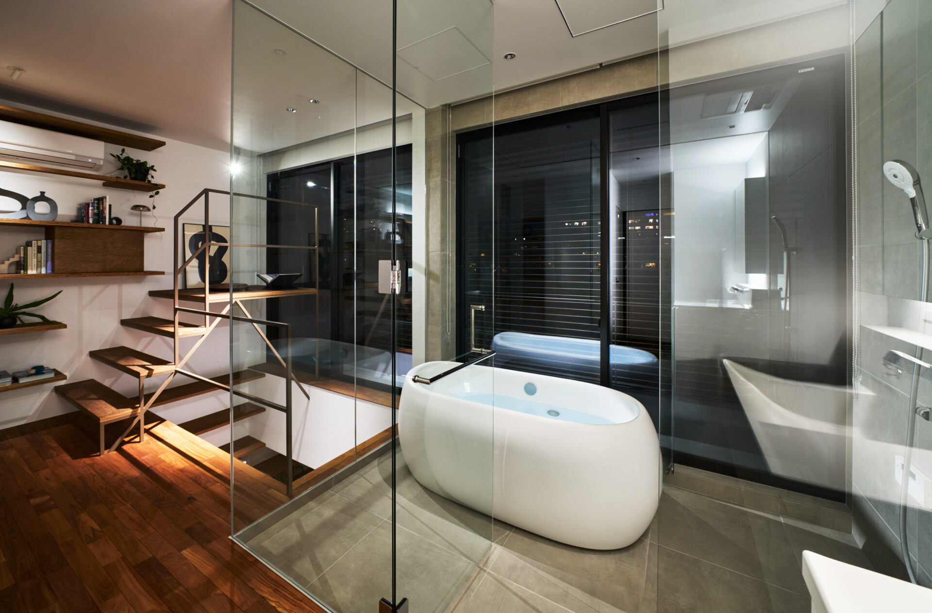 この構成は、単に要望を満たすだけでなく、日常の室内空間に非日常的な面白さをもたらし、特別な雰囲気を創り出します。