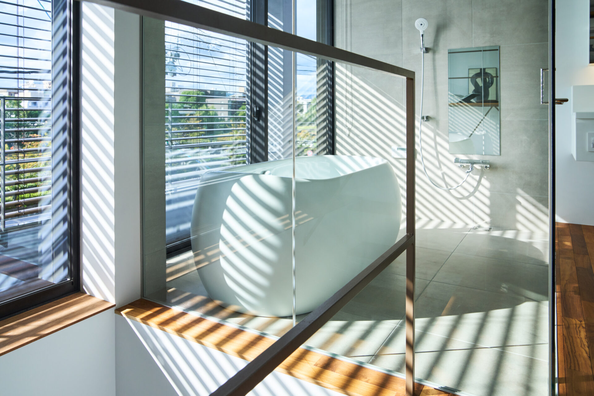 敷地の西側が道路に面していることから、眺望の確保と同時に、厳しい西日対策も必要でした。