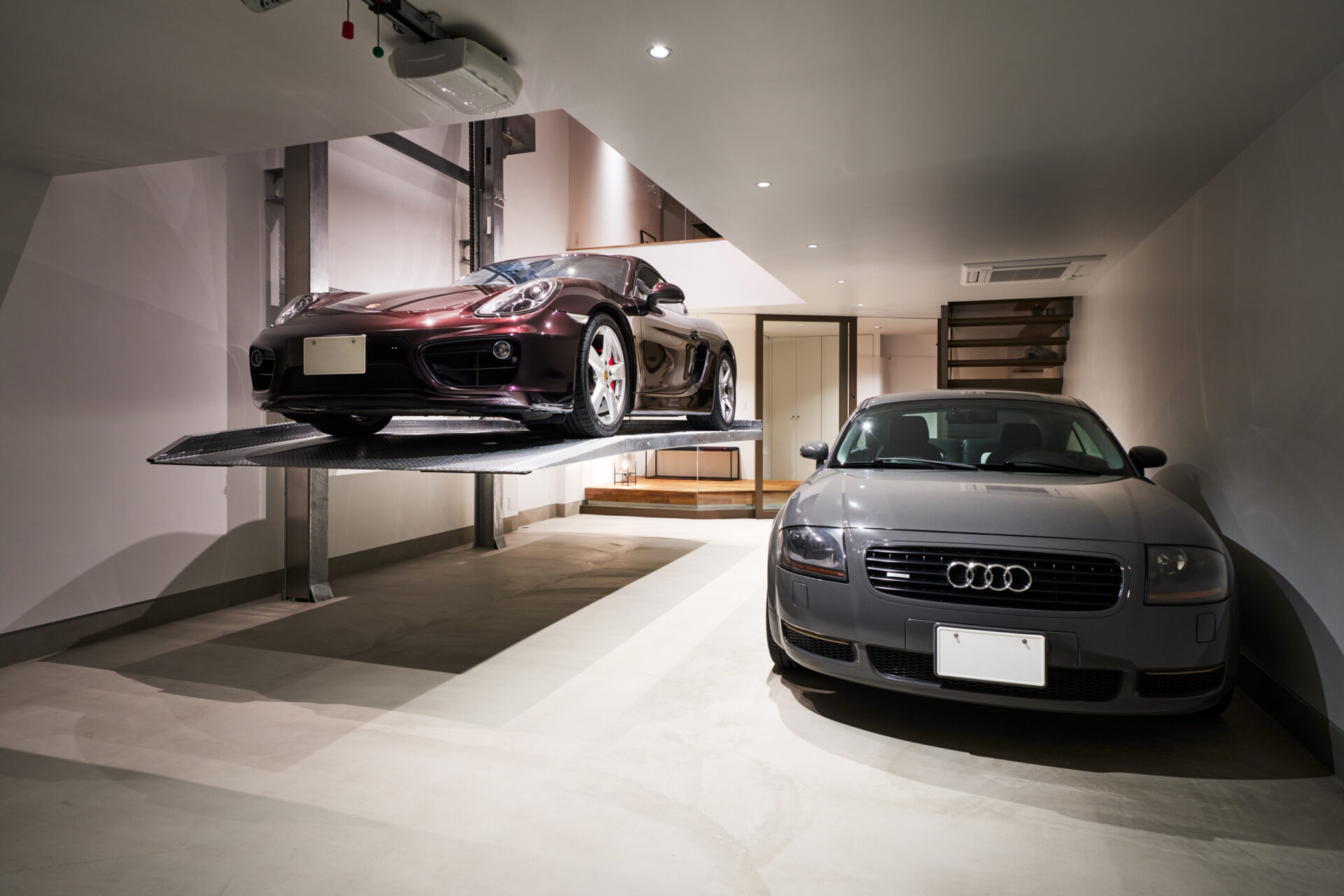 カーリフトのあるガレージハウス